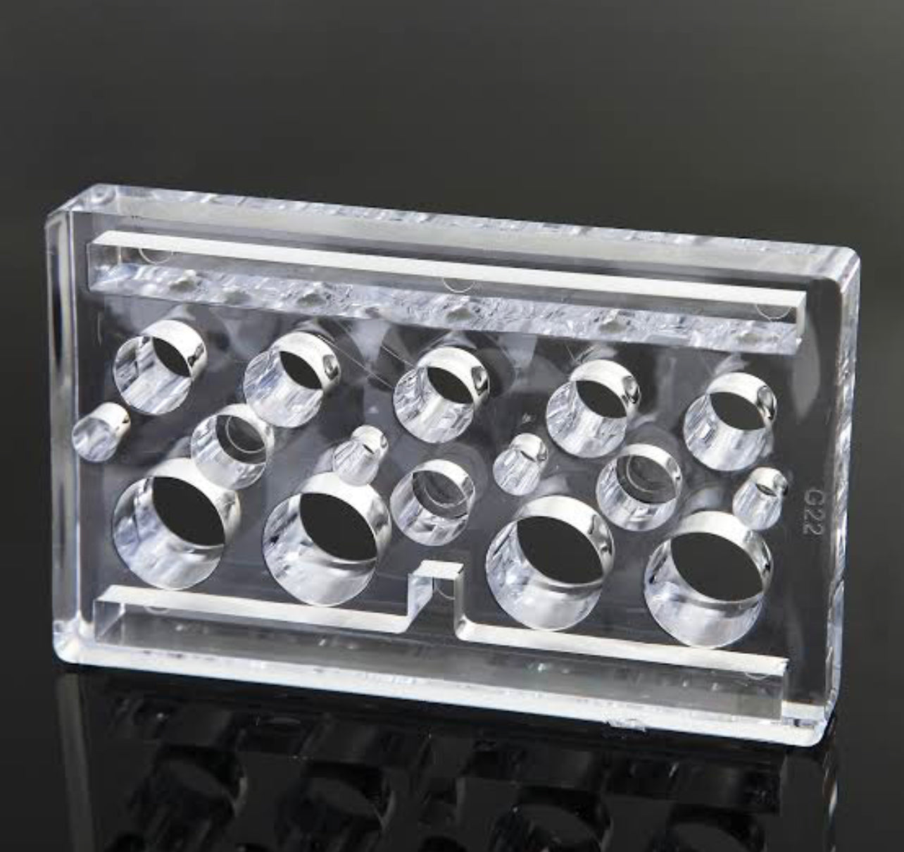 This acrylic pigment holder is designed for holding pigment cups for cosmetic tattooing.  It has 15 holes to accommodate for small and medium sized cups.