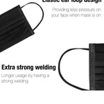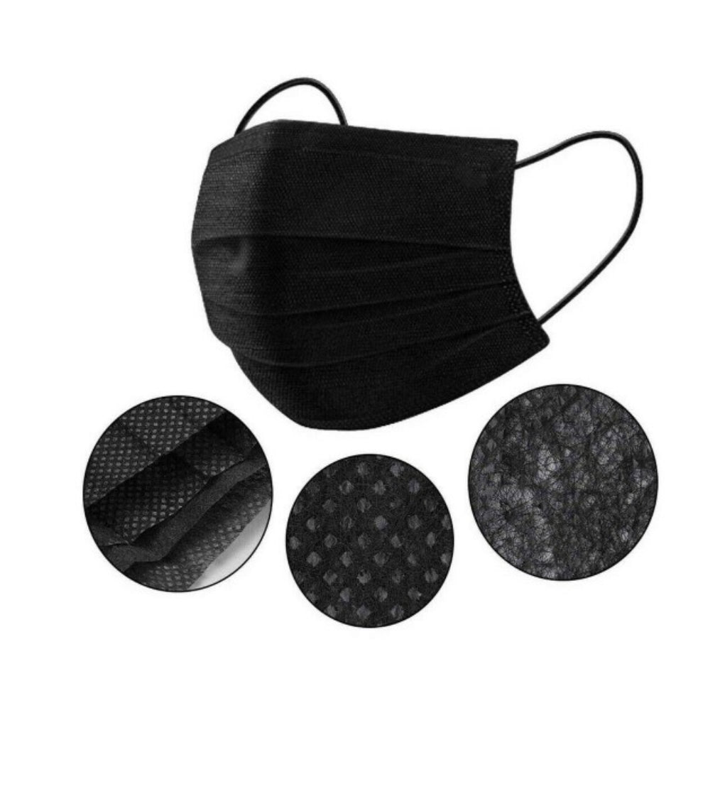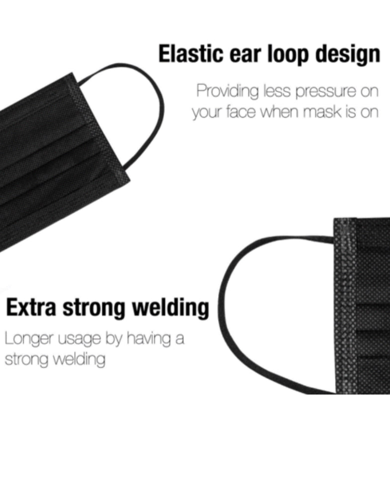 Black disposable masks have a three-layer design offers ≥ 95% filter efficiency with excellent breathability to help protect against the spread of bacteria and other harmful particles.