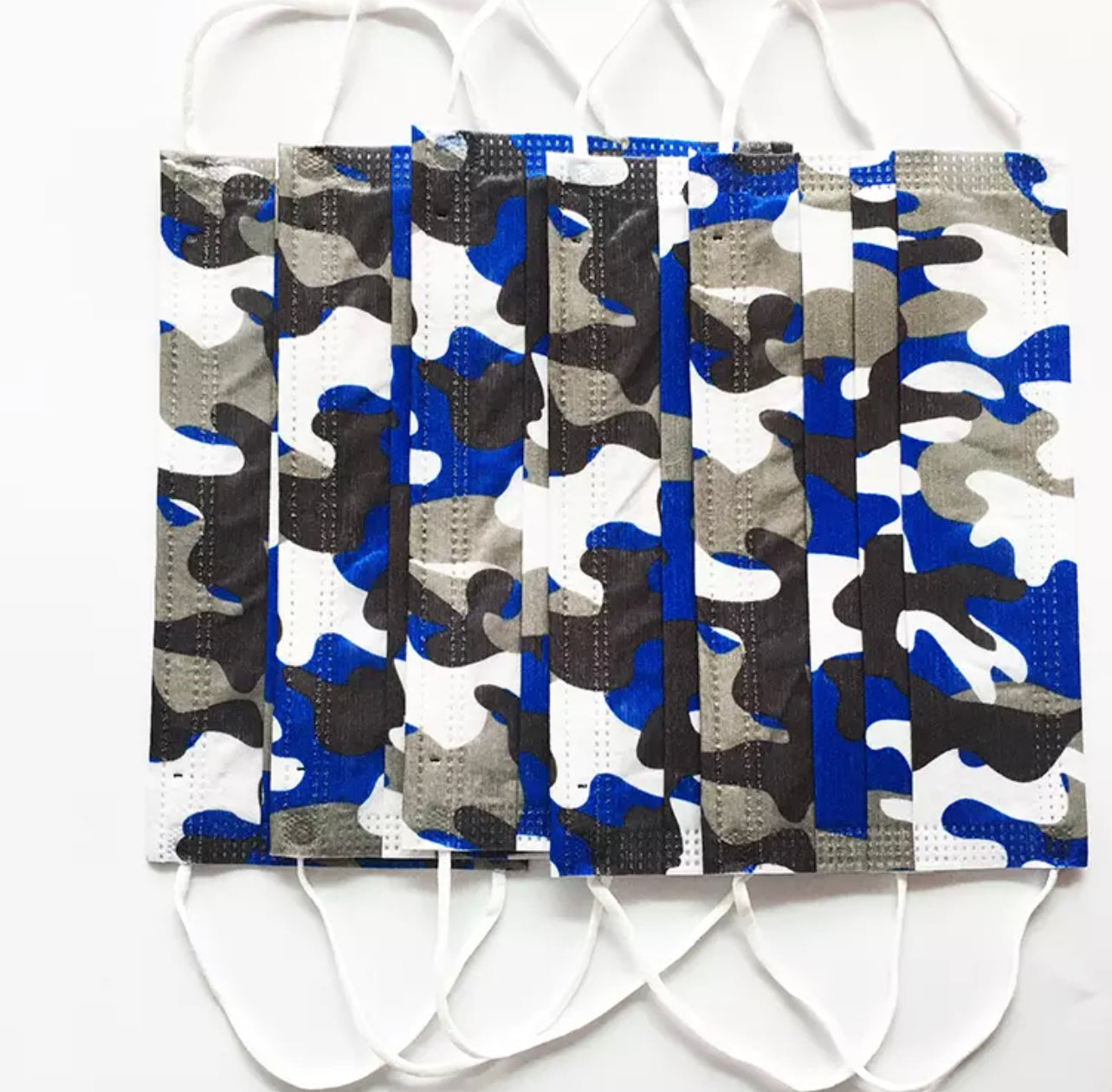 Disposable non woven 3-ply blue camouflage face masks (10-30pcs)