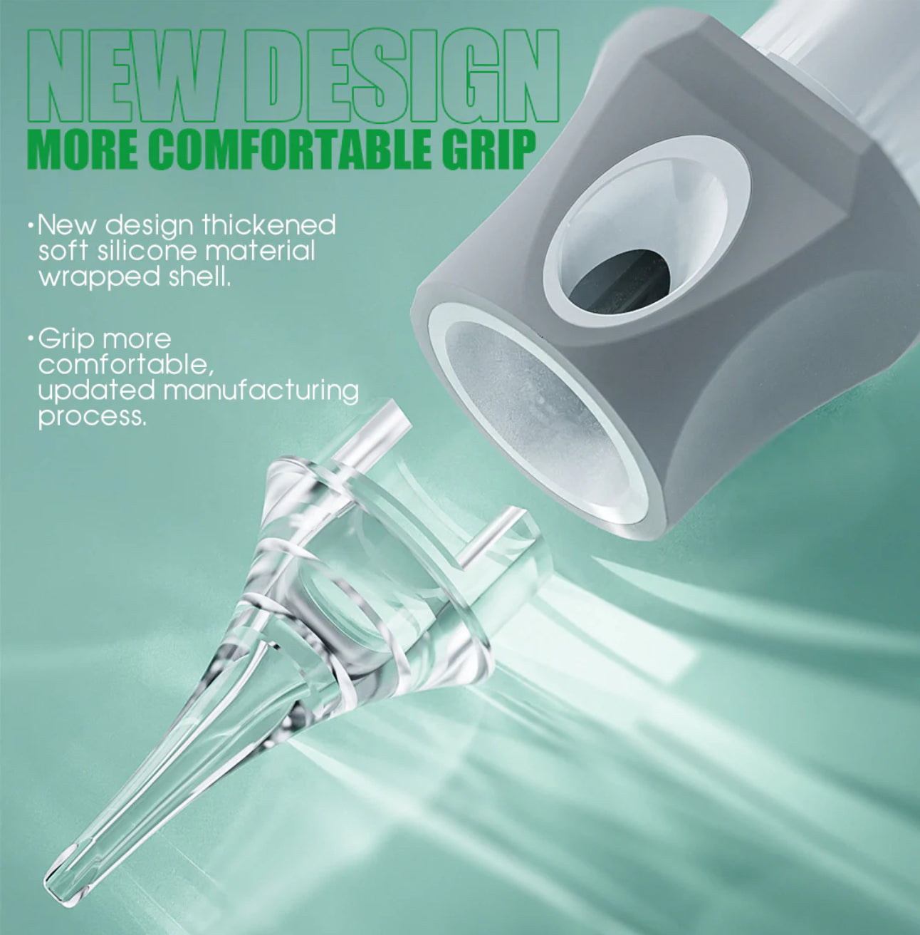 Each cartridge features a one-piece needle and plunger overmold for maximum stability and accuracy. The design allows the needle to glide evenly across the skin, maintaining consistent ink flow for clean, crisp results.