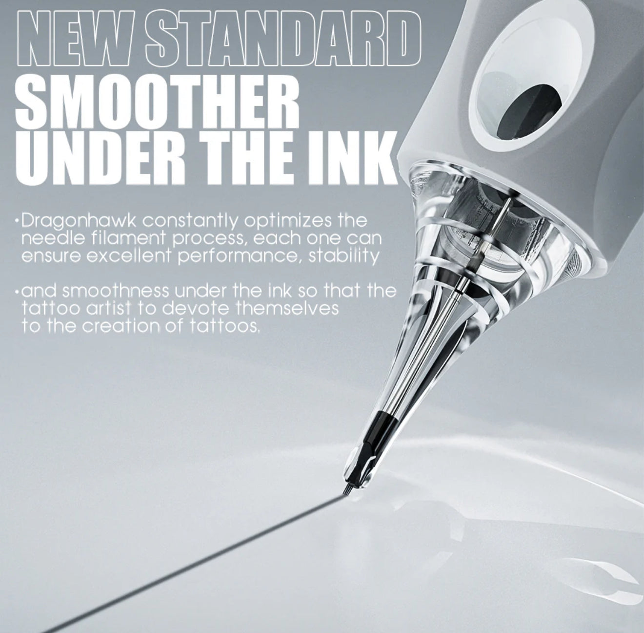 Create precise, effortless lines with the Dragonhawk Glide Extra Smooth Tattoo Cartridges. Designed for comfort, stability and consistency, these cartridges deliver a flawless, controlled tattooing experience every time.