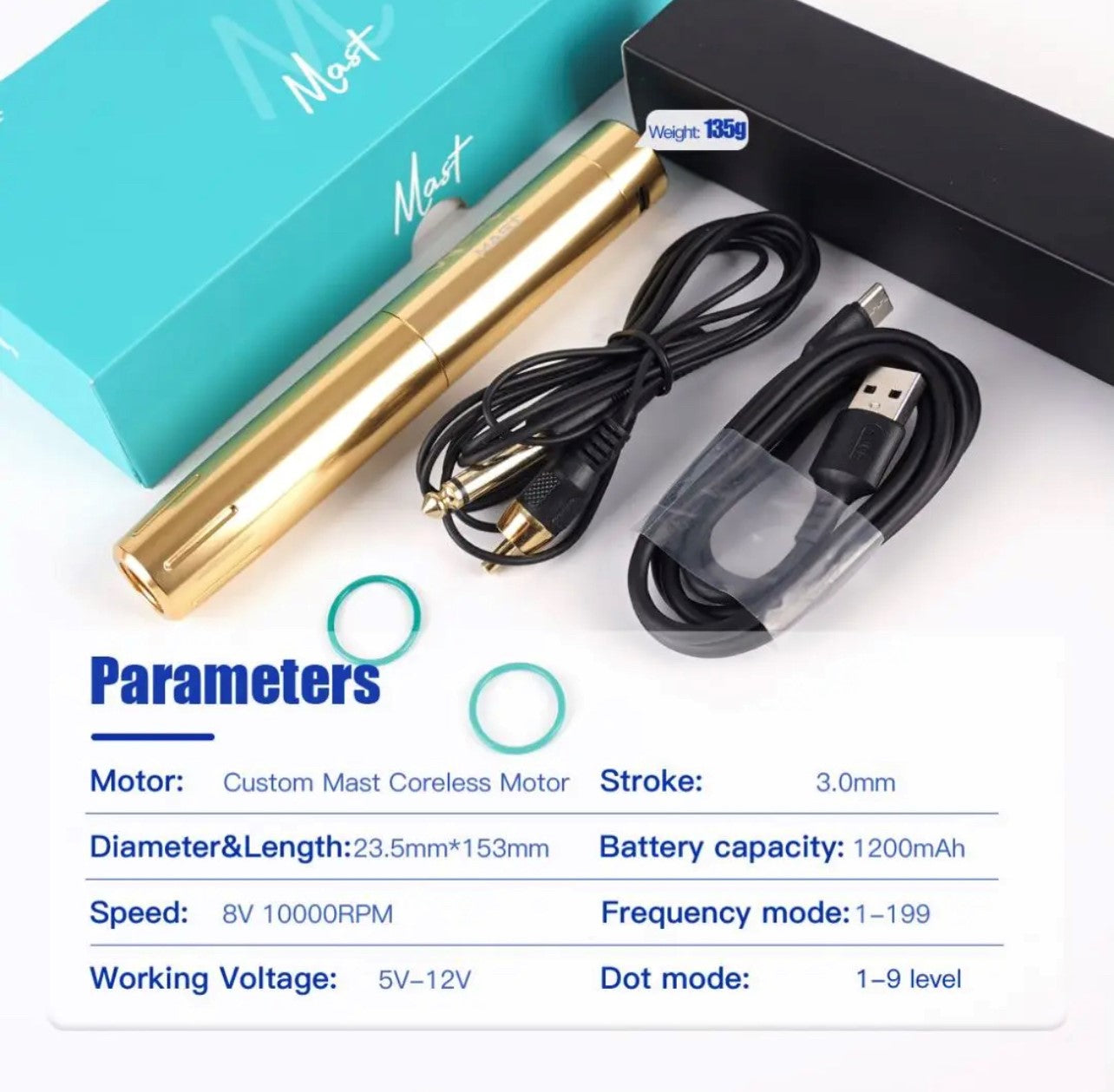 Equipped with custom Mast Coreless motor, unique and innovative motor assembly to create a remarkable tattooing experience.