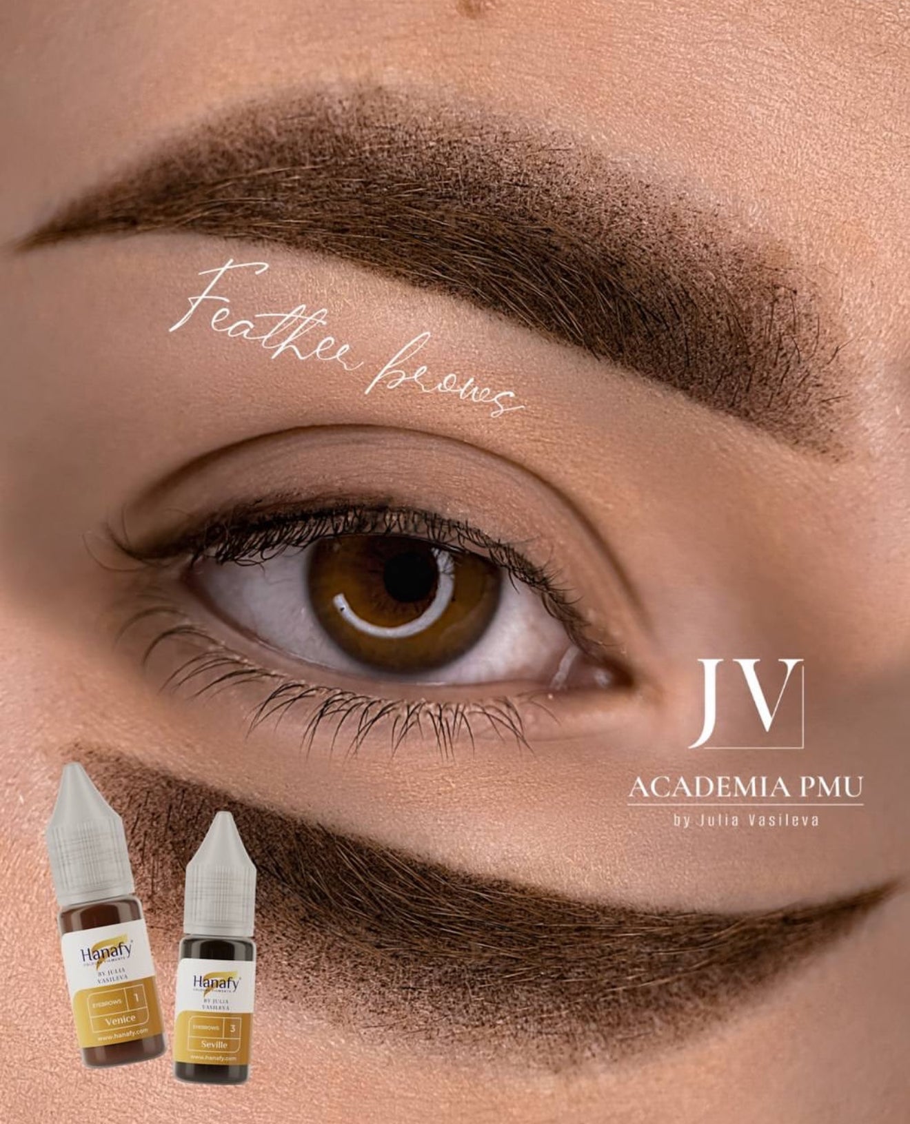 A hybrid pigment with a warm brown tone for permanent makeup of brows and eyelids. Beautiful and refined. Gives high residue after healing. Suitable for both solo use and mixing with other pigments.