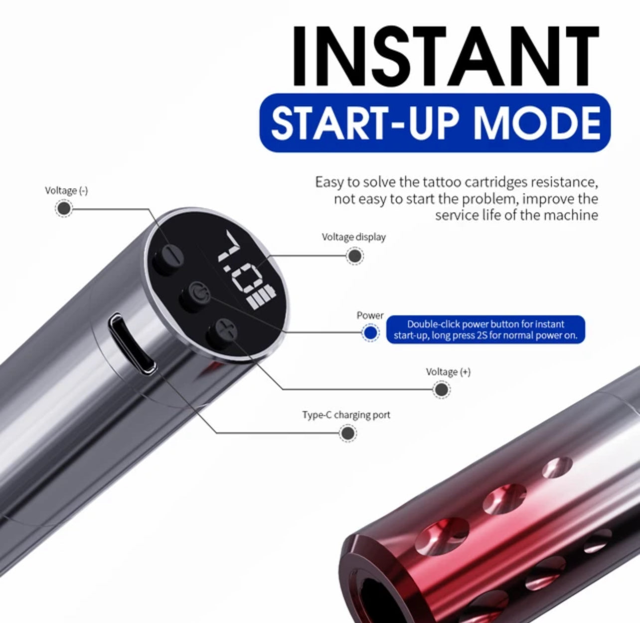Introducing Mast Precision Ink wireless tattoo machine - the ultimate tool for flawless artistry. With simplified operations and a 3mm stroke, this machine offers precision and consistency. The instant startup and exceptional battery capacity make it convenient for long sessions. Experience the perfect blend of innovation and convenience with Precision Ink.