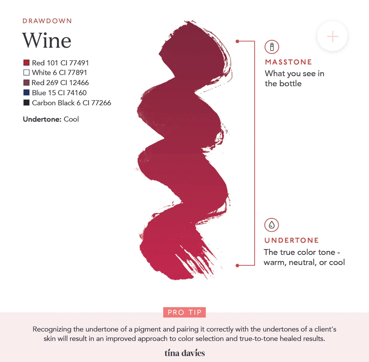 Tina's favourite cool, berry/red lip pigment ideal for light-deep skin tones.