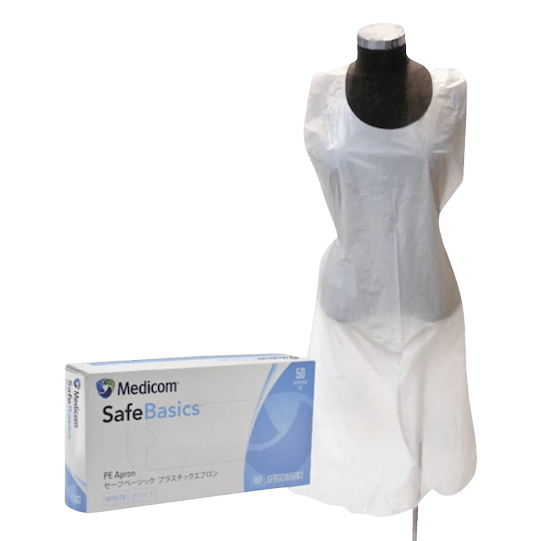 Disposable Plastic Aprons are made from lightweight plastic, these disposable aprons are ideal for providing waterproof protection from neck to knee, in surgical, clinical, medical and care settings where liquid splashes are prevalent.
