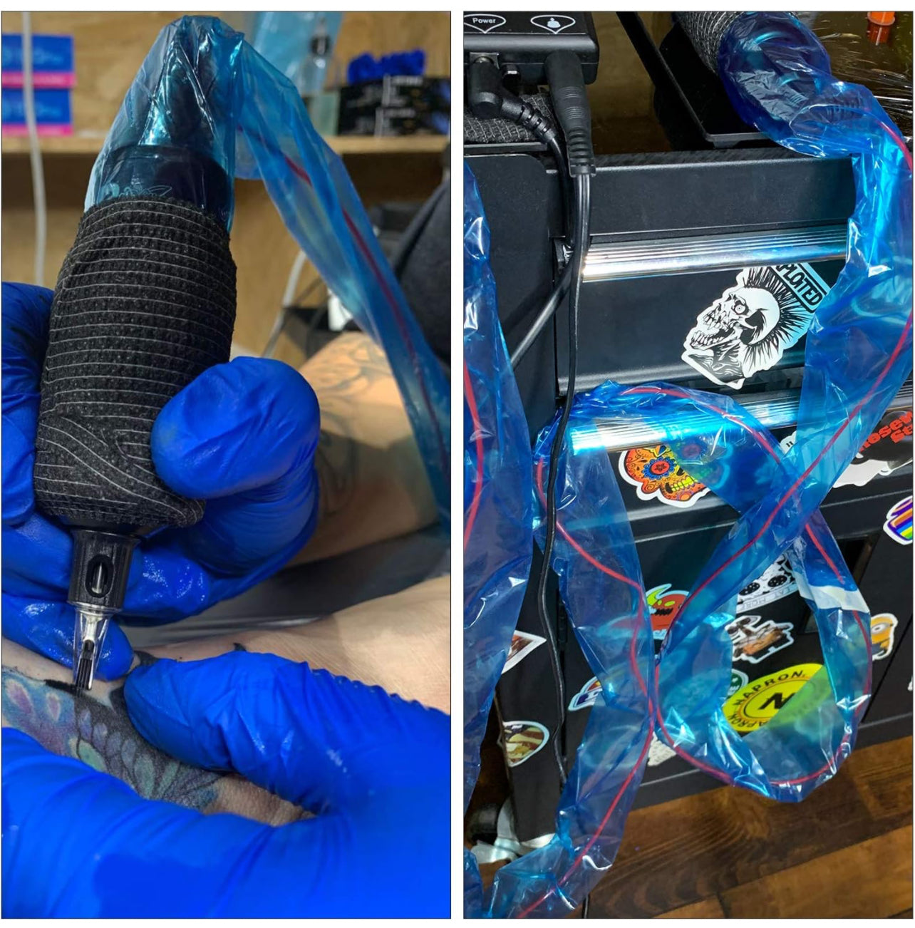 Tattoo clip cord sleeves cover your tattoo machine and cord to maintain a sterile work environment. The cord sleeves work by going over the tattoo machine and cord, creating a barrier for blood, ink and dust. Having a barrier is essential to avoid cross contamination.